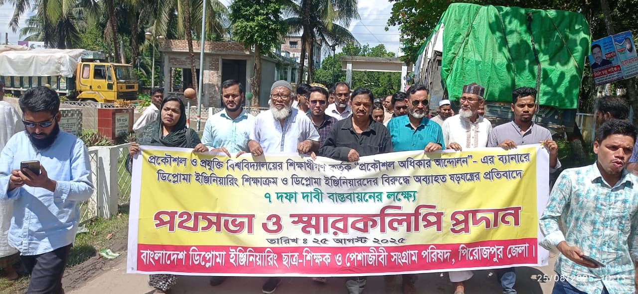 ডিপ্লোমা ইঞ্জিনিয়ারদের ৭ দফা দাবিতে পিরোজপুরে পথসভা ও স্মারকলিপি প্রদান