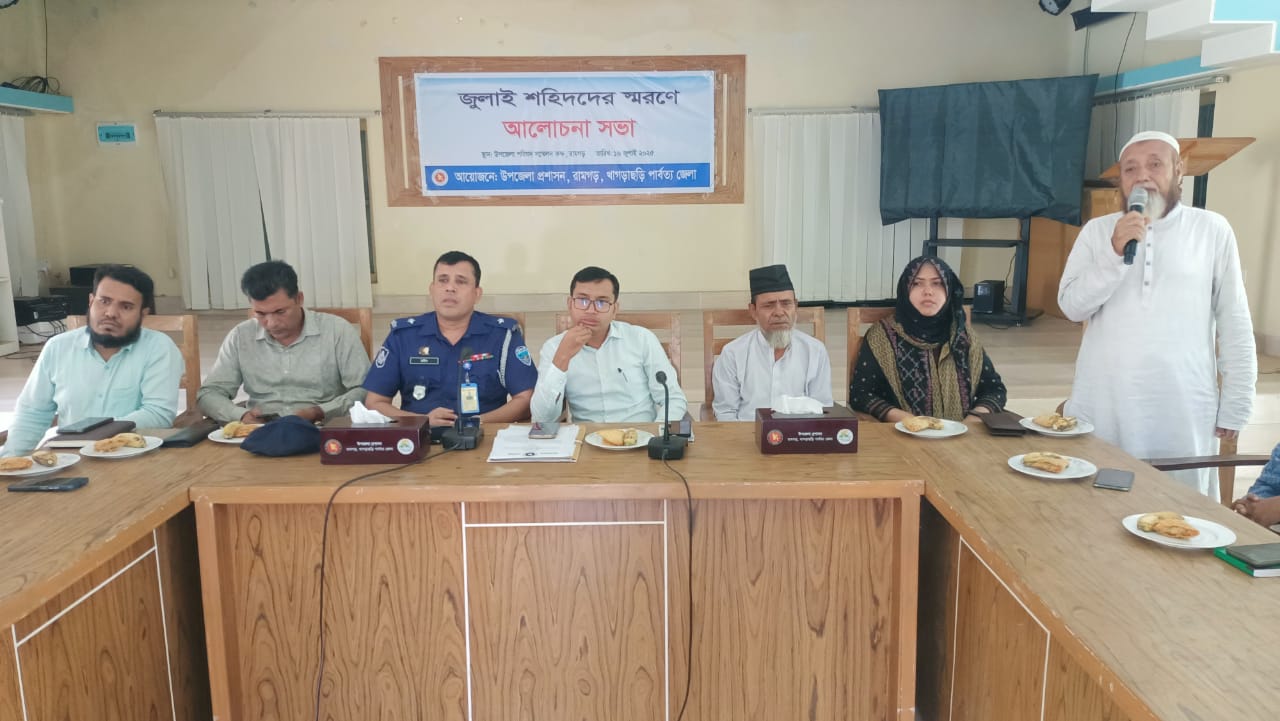 রামগড় উপজেলা প্রশাসনের উদ্যোগে জুলাই ২৪ শহিদদের স্মরণে আলোচনা সভা
