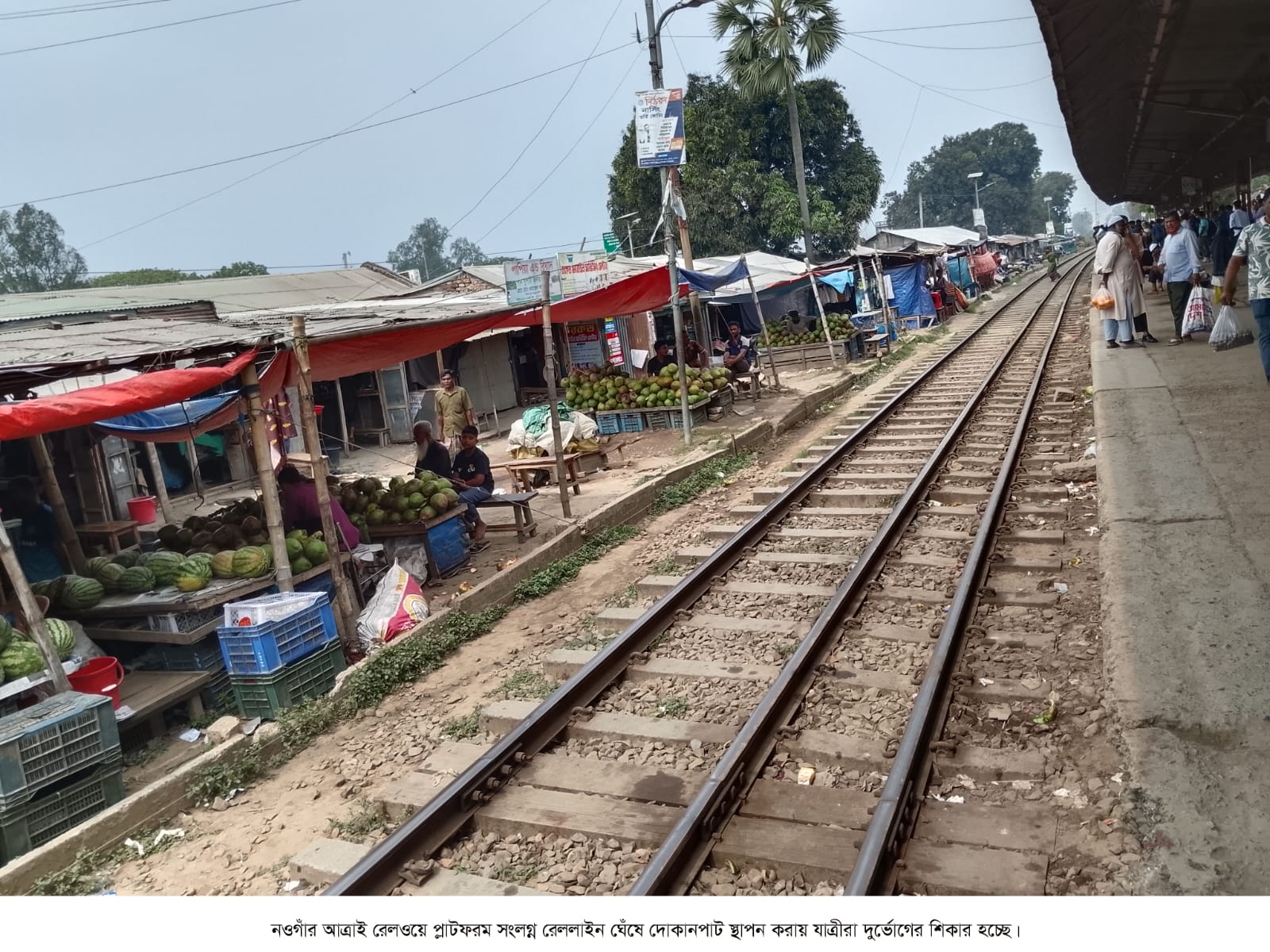 নওগাঁর আত্রাইয়ে রেলপথ ঘেঁষে অসংখ্য দোকানপাট: যে কোনো সময় দুর্ঘটনার আশঙ্কা